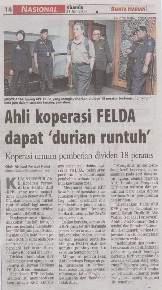 Ahli Koperasi Felda Dapat "Durian Runtuh"