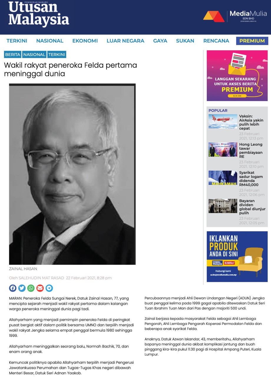 Wakil Rakyat Felda Pertama Meninggal Dunia