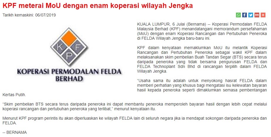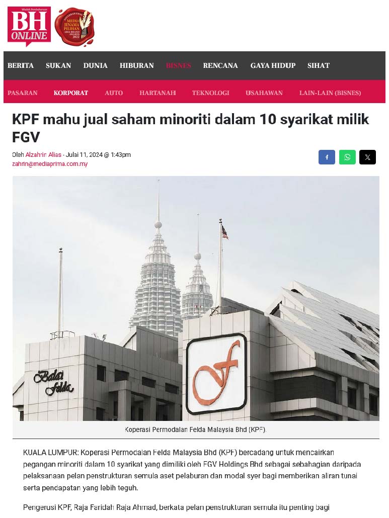 KPF Mahu Jual Pegangan Dalam 10 Firma Milik FGV