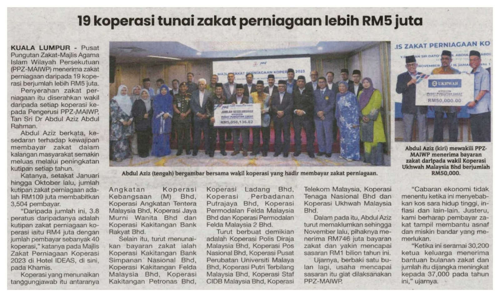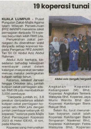 19 Koperasi Tunai Zakat Perniagaan Lebih RM5 Juta