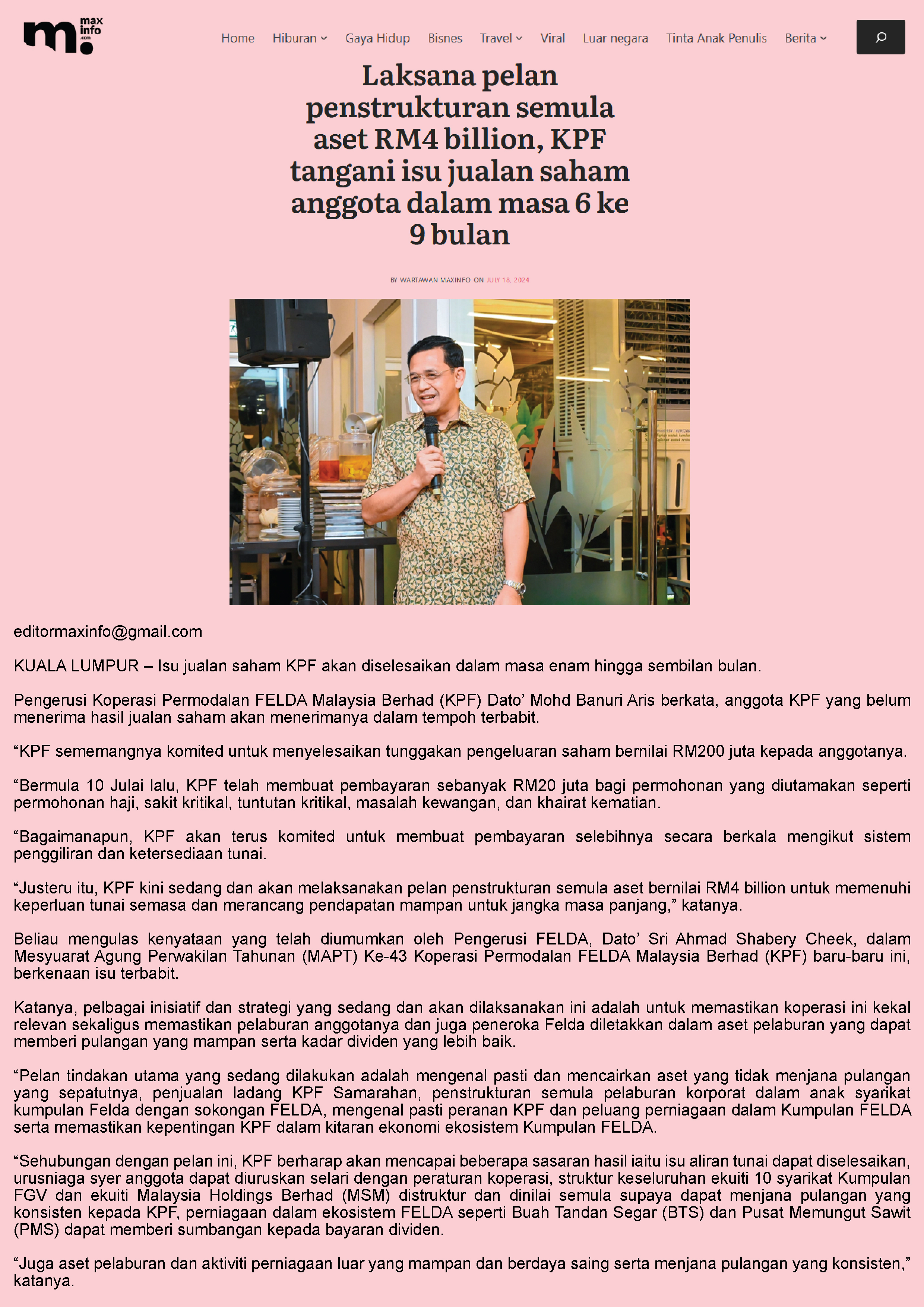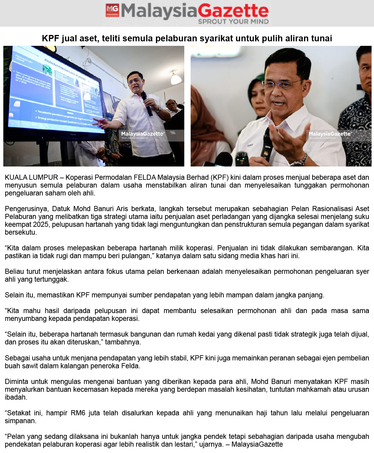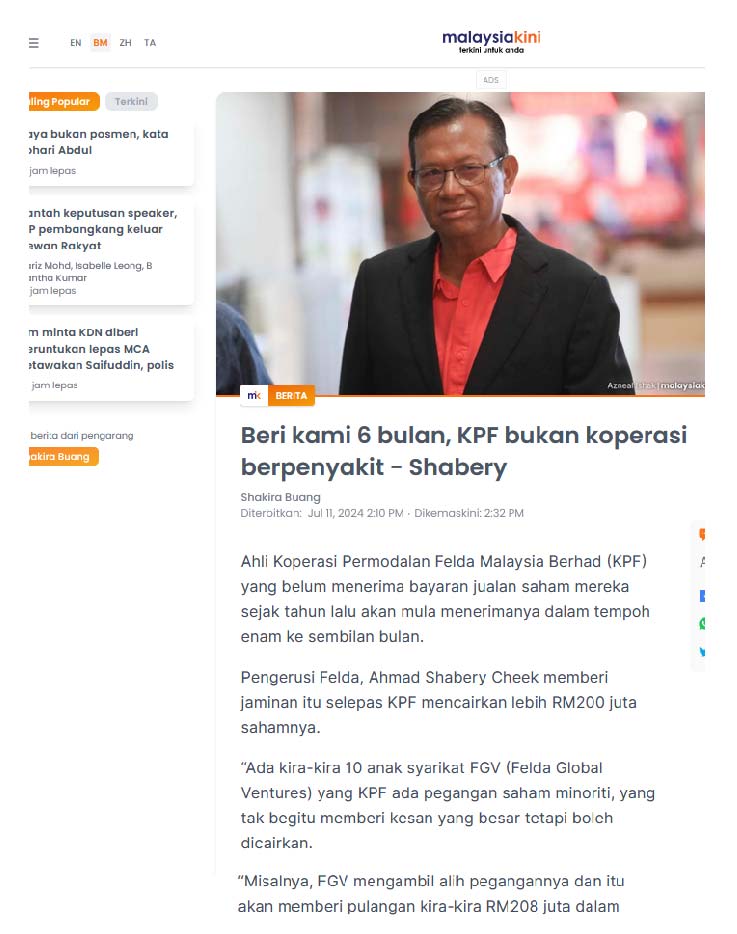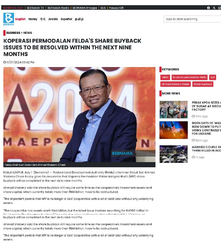 Isu Jualan Saham KPF Selesai Dalam 6 Hingga 9 Bulan,Jamin Shabery