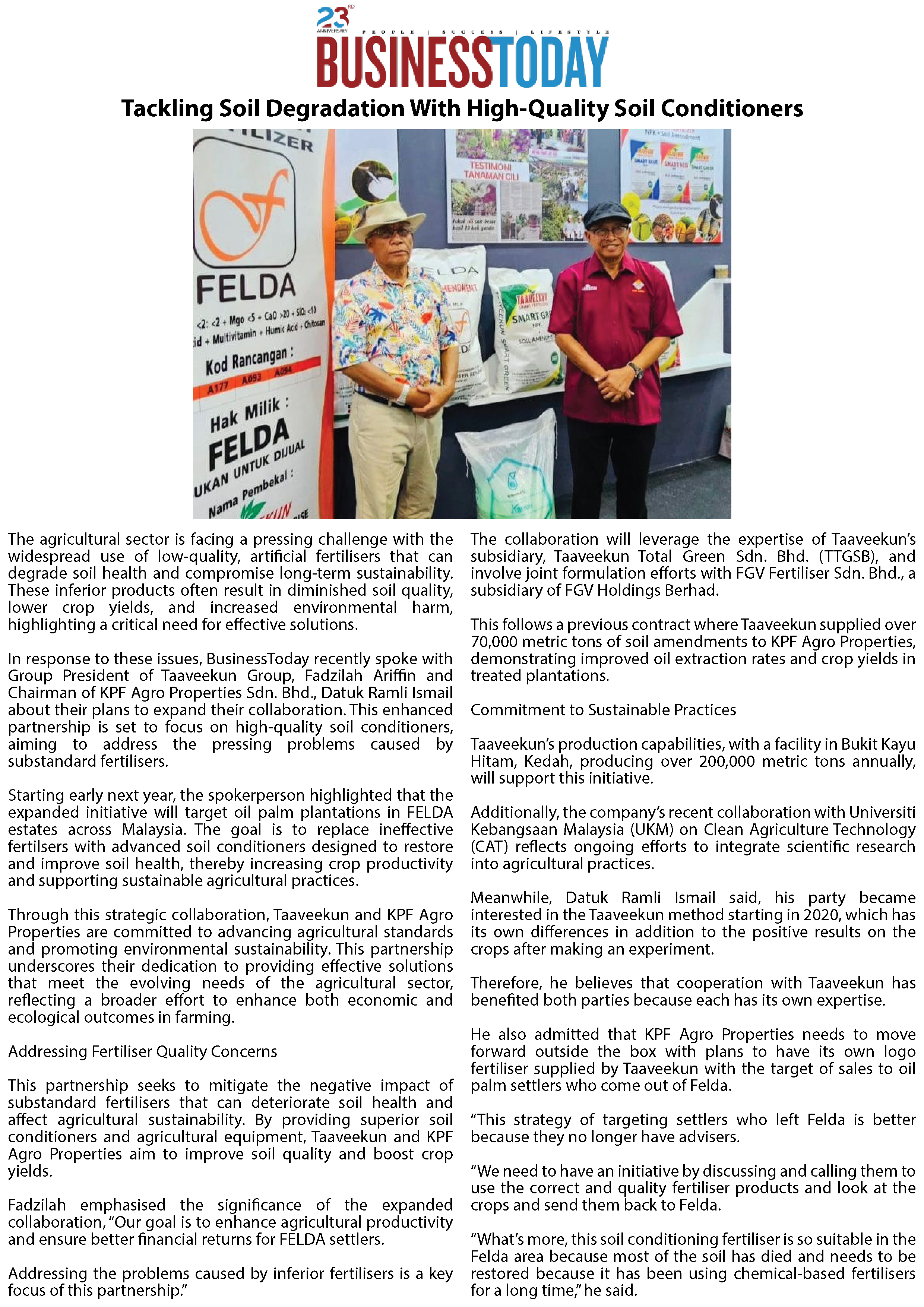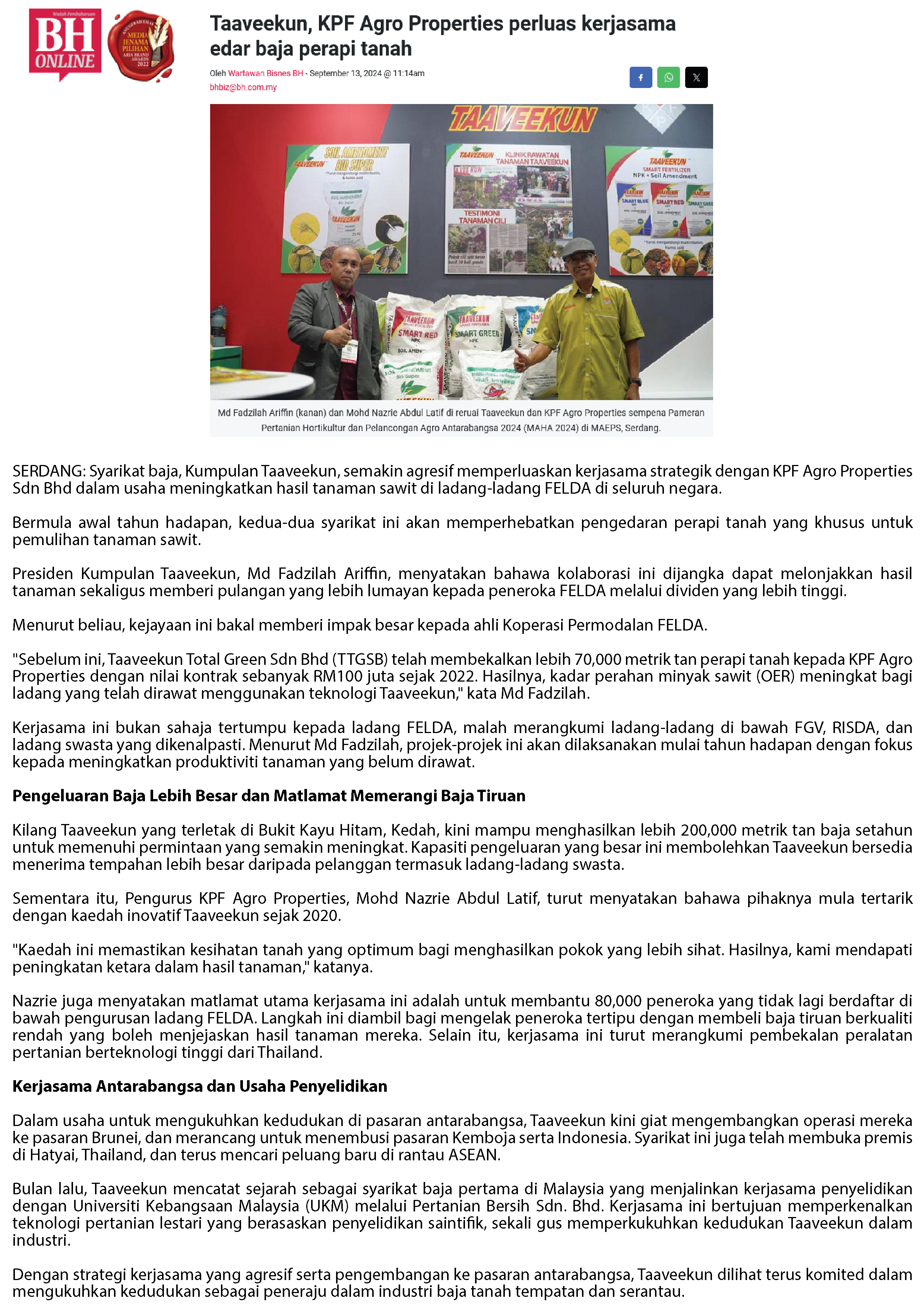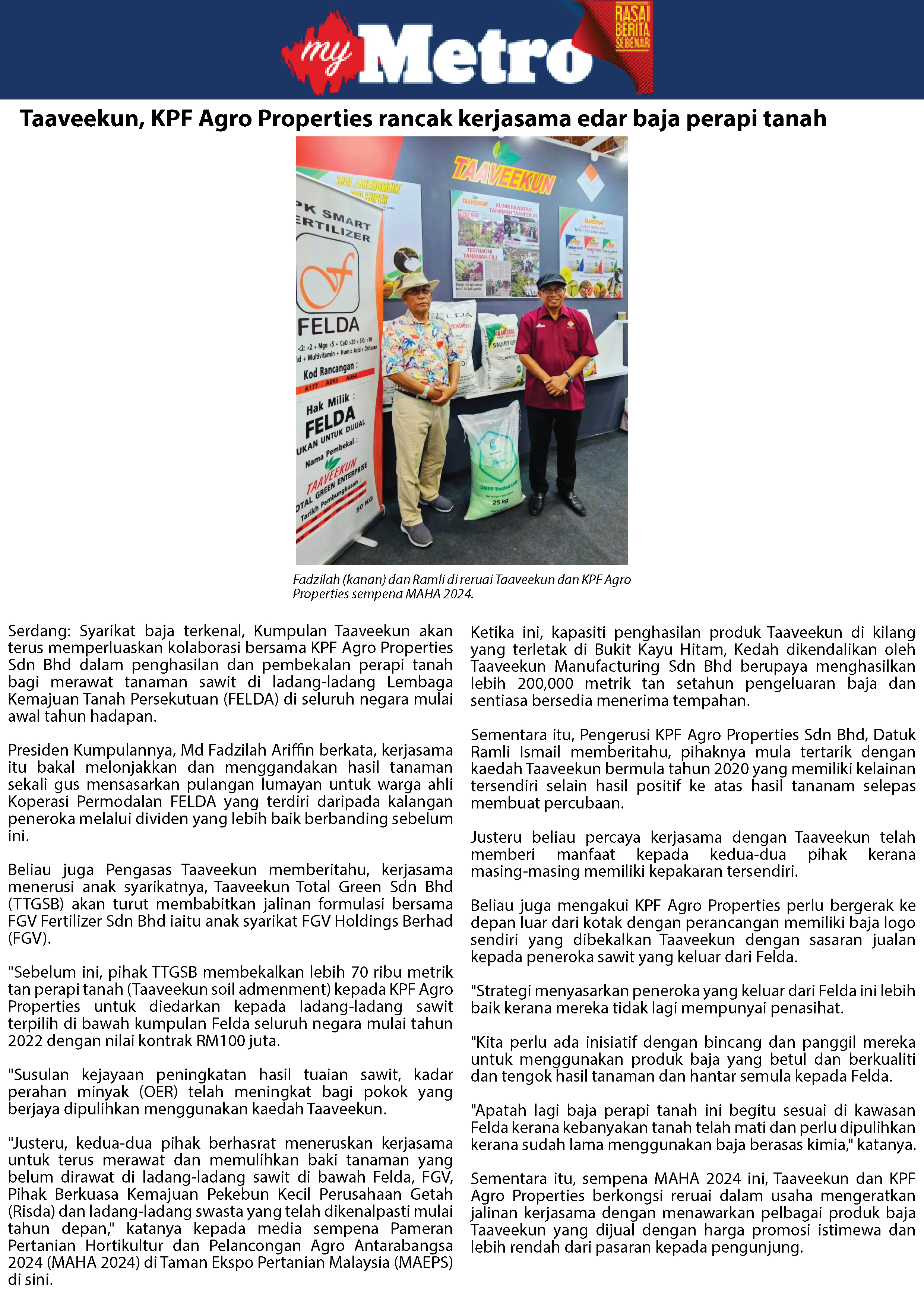 Taaveekun, KPF Agro Properties Perluas Kerjasama Edar Baja Perapi Tanah