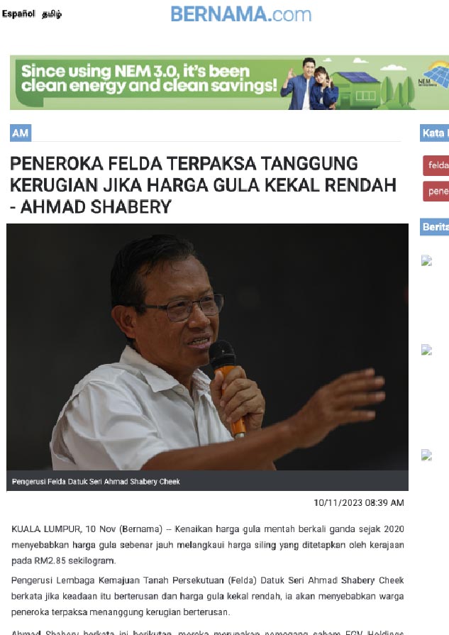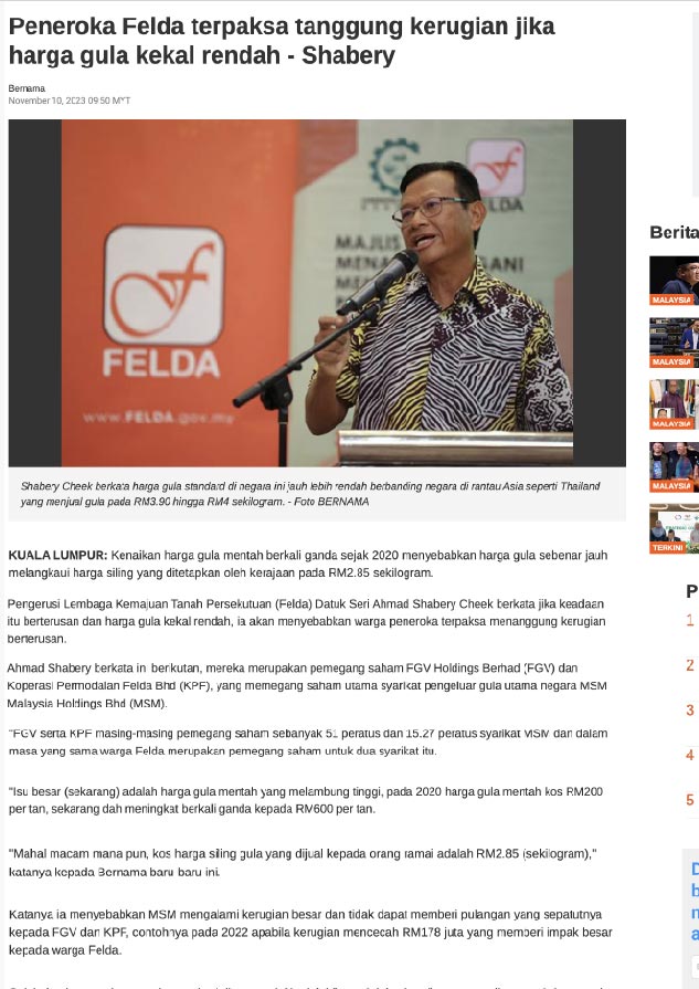 Peneroka Terpaksa Kerugian Jika Harga Gula Kekal Rendah