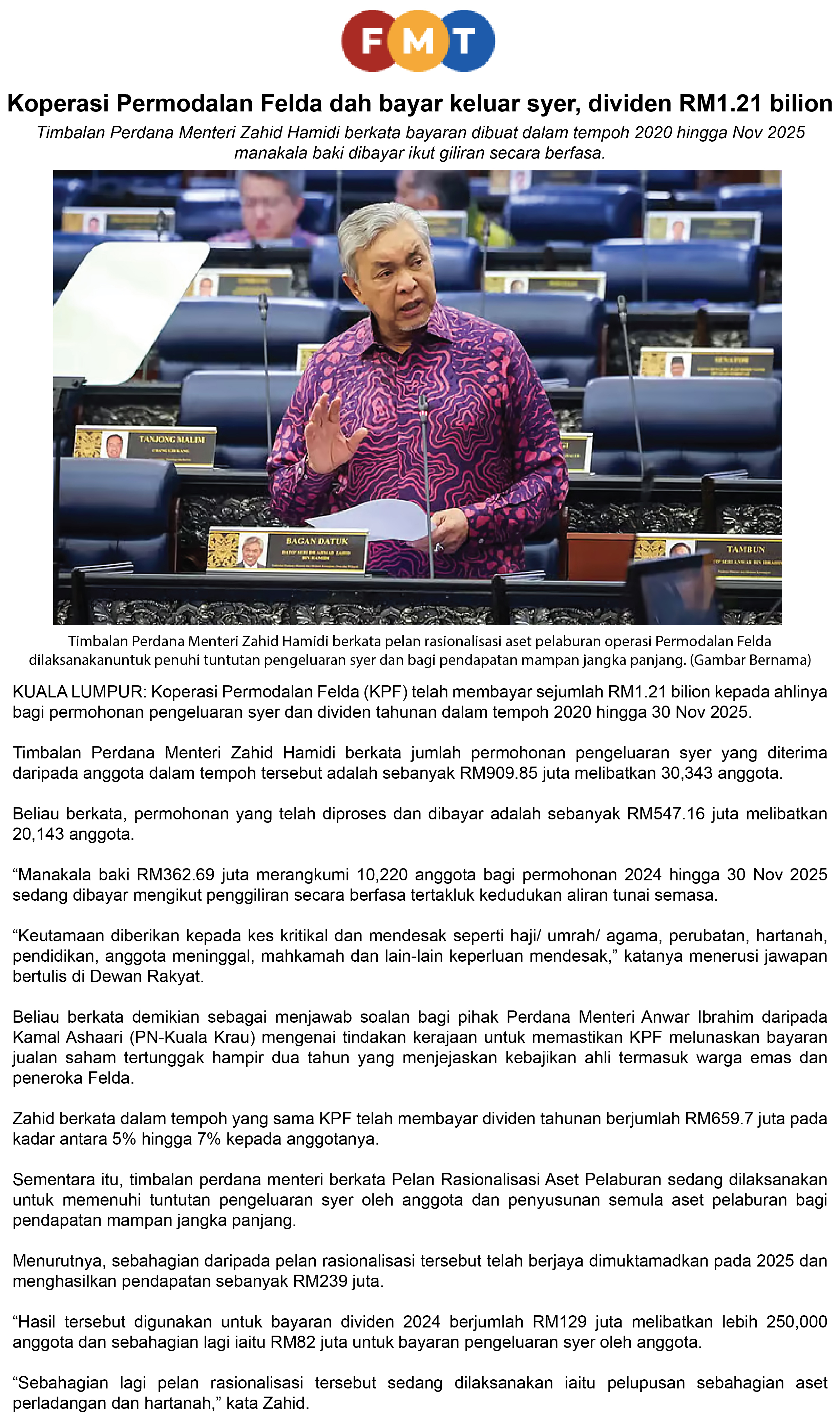 KPF LUNAS BAYARAN RM1.21 BILION KEPADA AHLI SEPANJANG TEMPOH 2020-NOV 2025 - AHMAD ZAHID