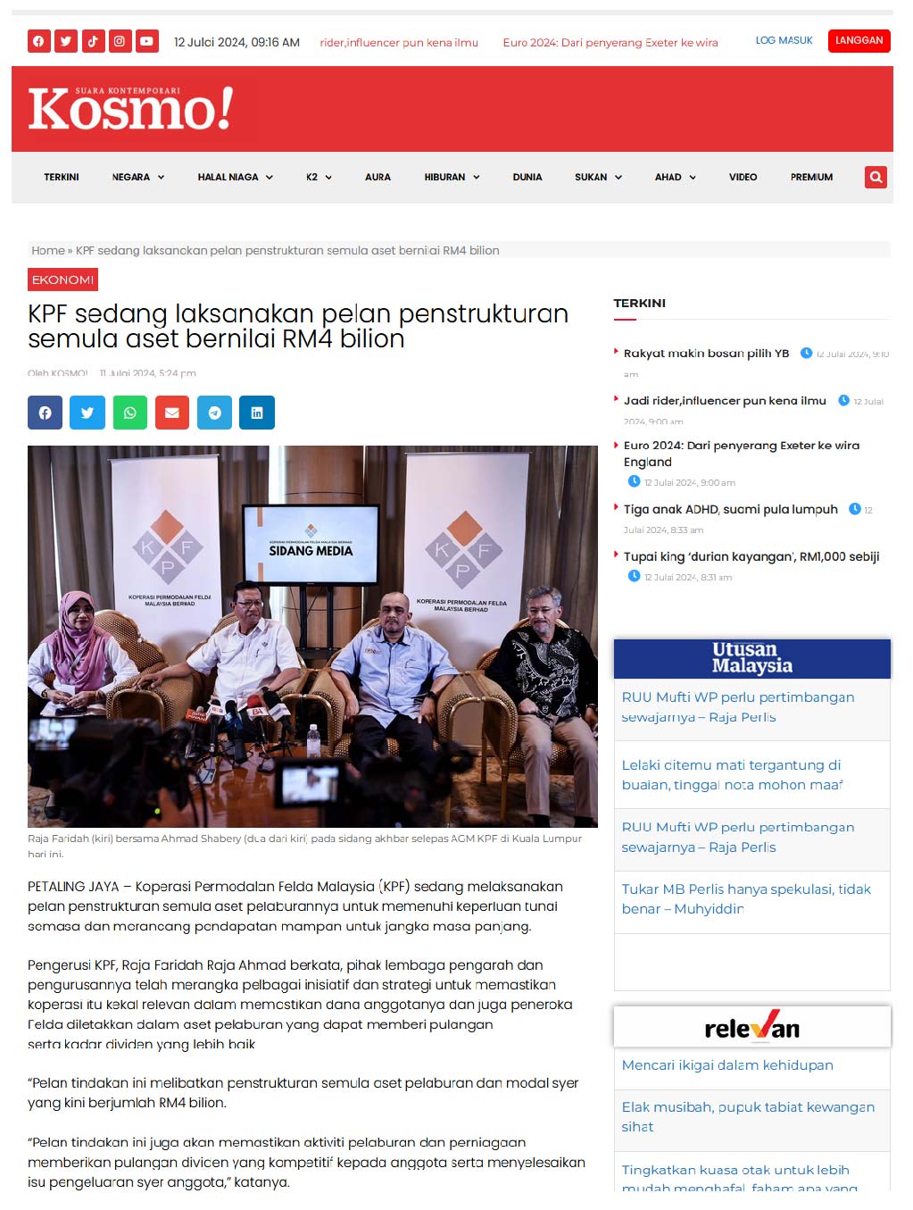KPF Sedang Laksanakan Pelan Penstrukturan Semula Aset Bernilai RM4 Bilion